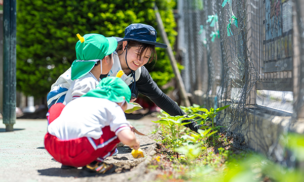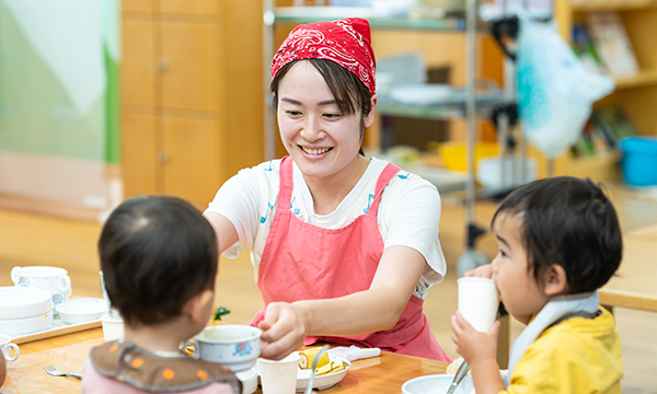 職員配置にゆとりがあるため、一人ひとりの発達段階にじっくりと寄り添うことができるとともに、先生たちのプライベートの安心も保証し、長く活躍できる環境を整えています。
